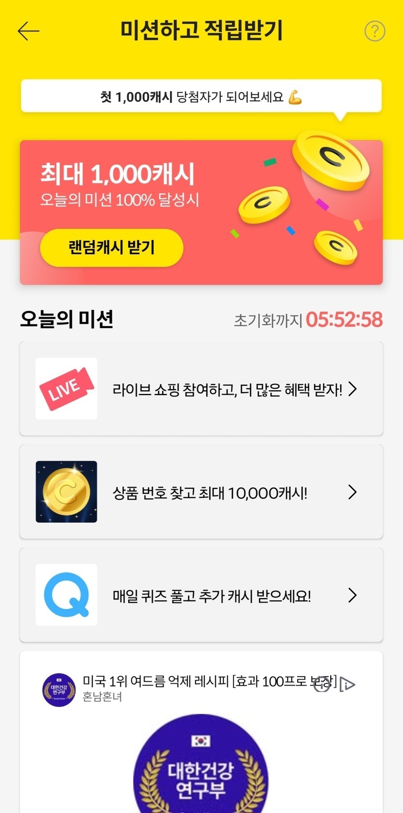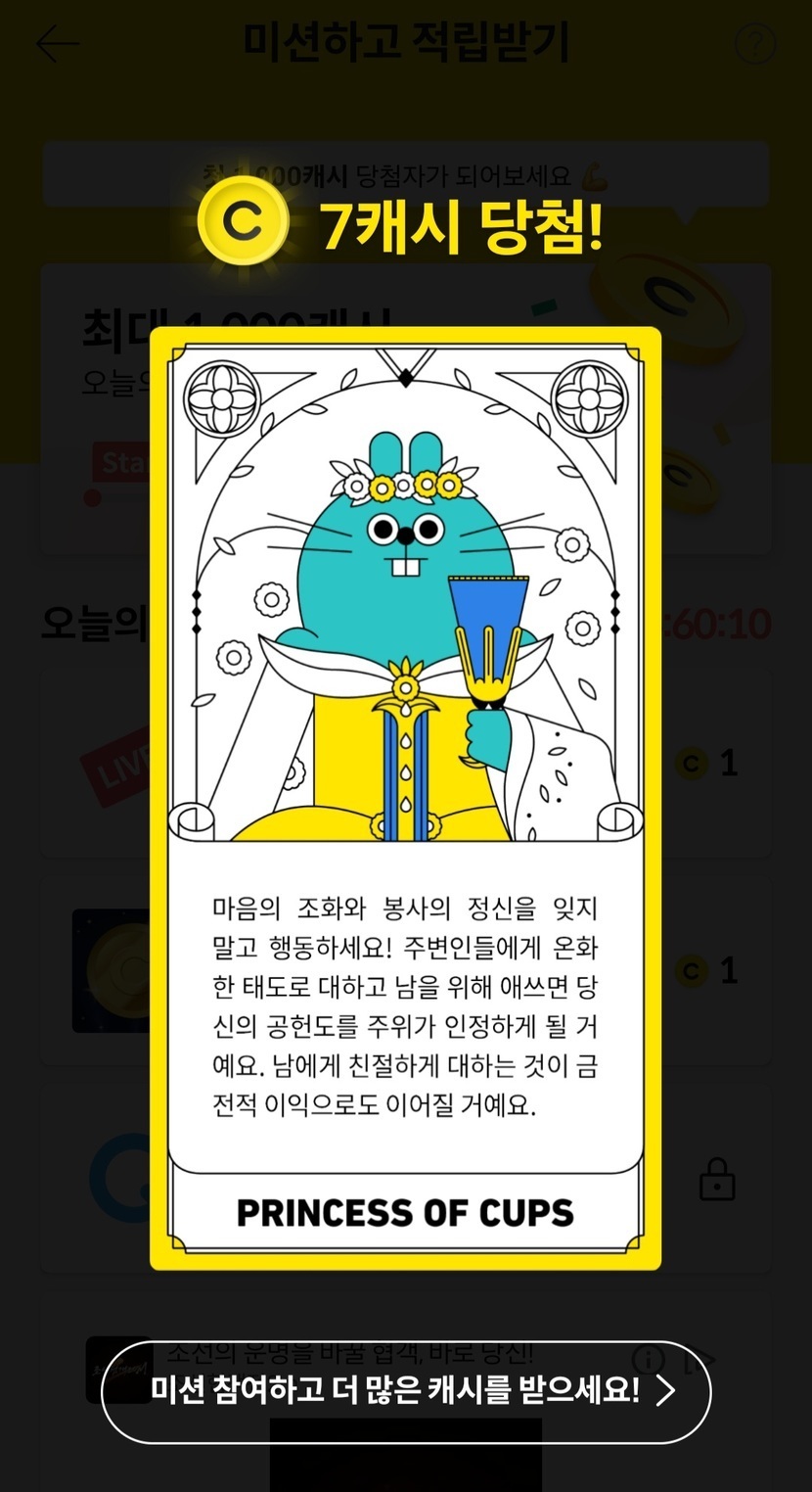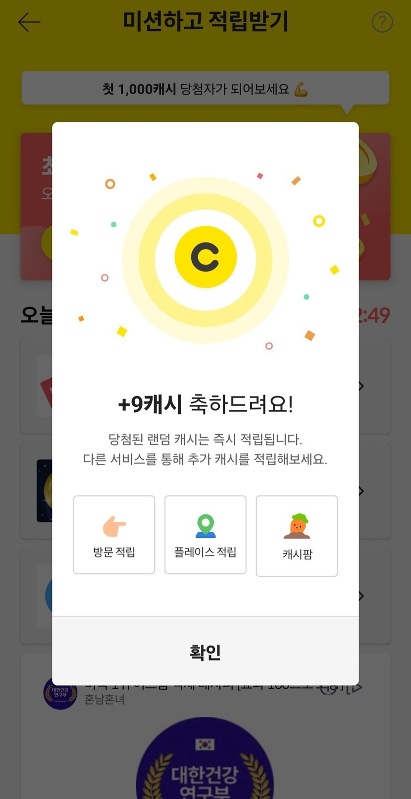 미션성공 9캐시 적립~~!!