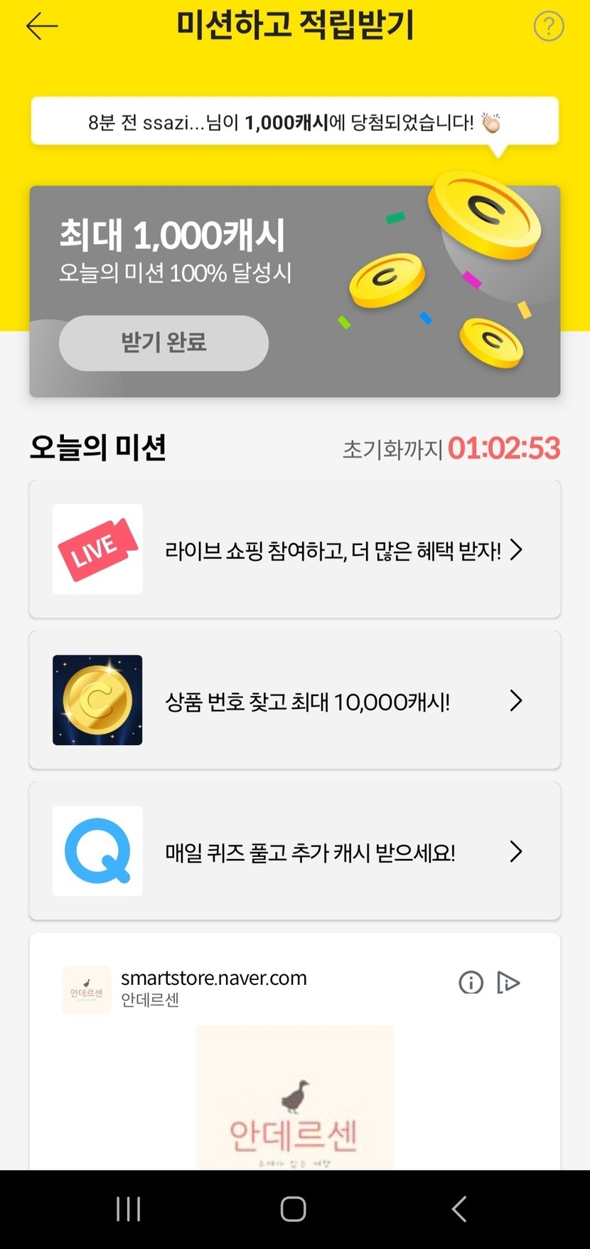 미션성공 7캐시적립~~!!