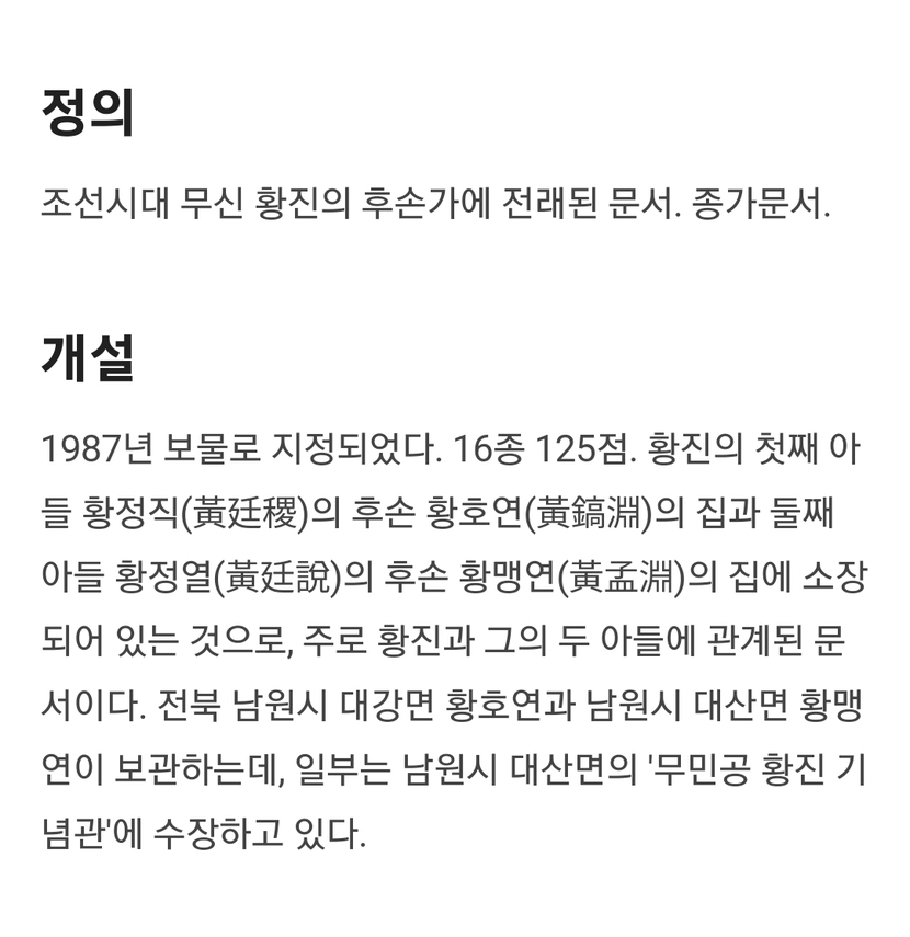 보물 942호 황진가 고문서