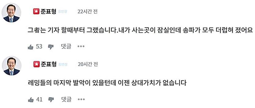 홍 시장은 전날 지지자들과의 소통 플랫폼 '청년의꿈'에서 해당 서명운동과 관련해 "레밍들의 마지막 발악일 뿐 더 이상 상대할 가치가 없다"고 일축했다.