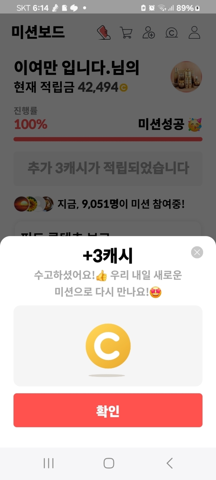 미션 완료 3캐시