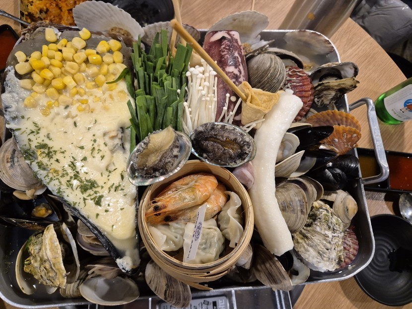 조개찜에 소주한잔 했어유....