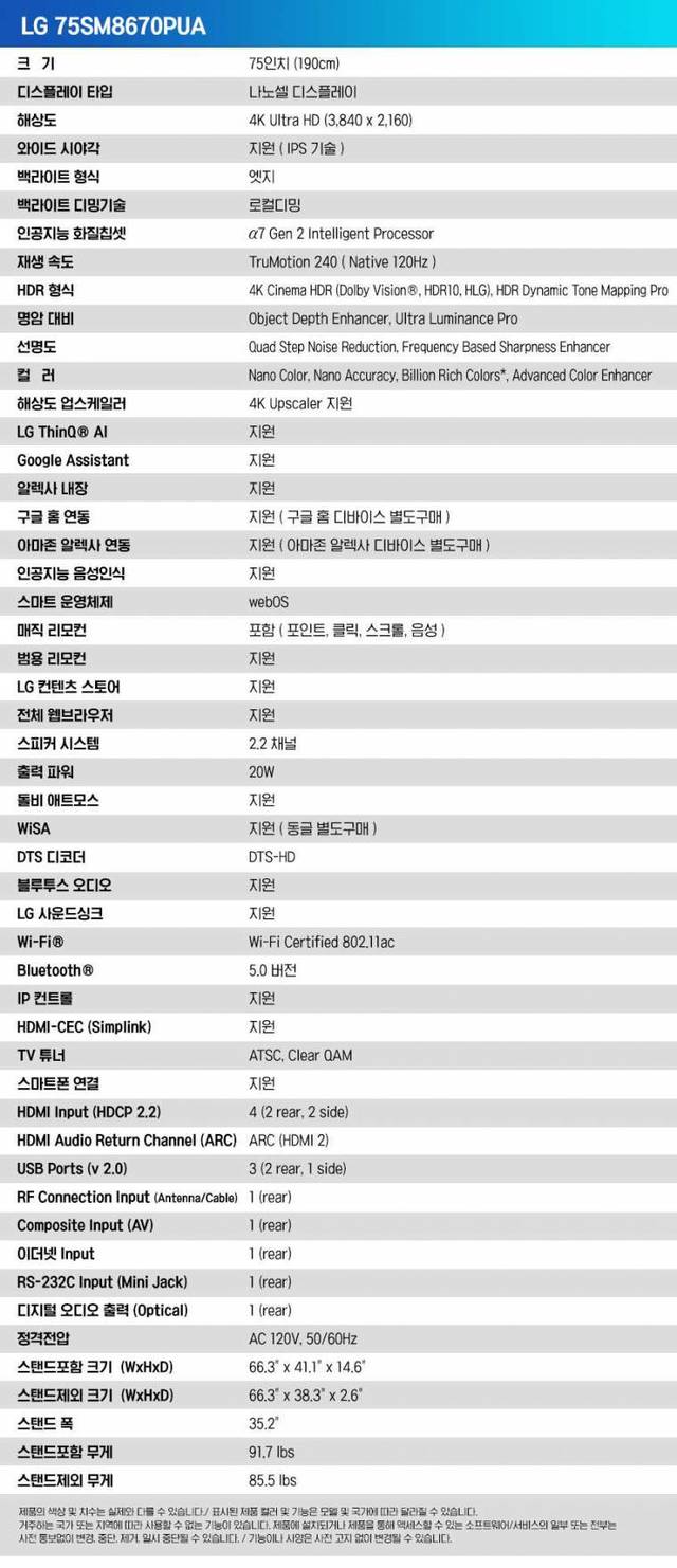 모델명은 LG 75sm8670