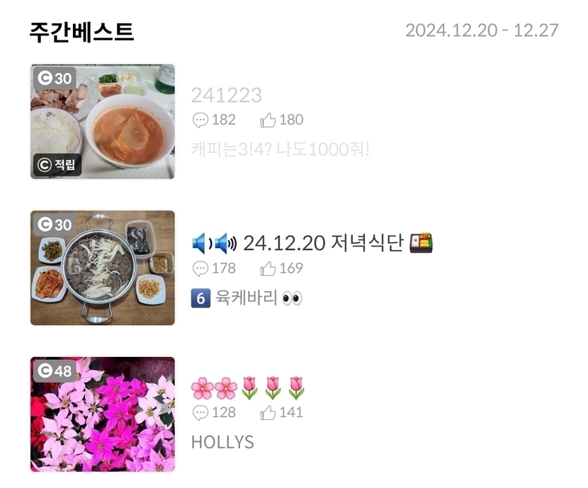 24.12.28 769 읽음 241227 캐피는3!4? 구독!!땡큐요! 구독하기 173 165 콘텐츠의 수익 27 불금이니깐냠냠주간베스트 감사합니다 토스고양이가 준 커피올해까지라ㅎㅎ근데 선물받음숫자놀이 오늘도 웃는 좋은하루되세요 165 0 / 300 입력