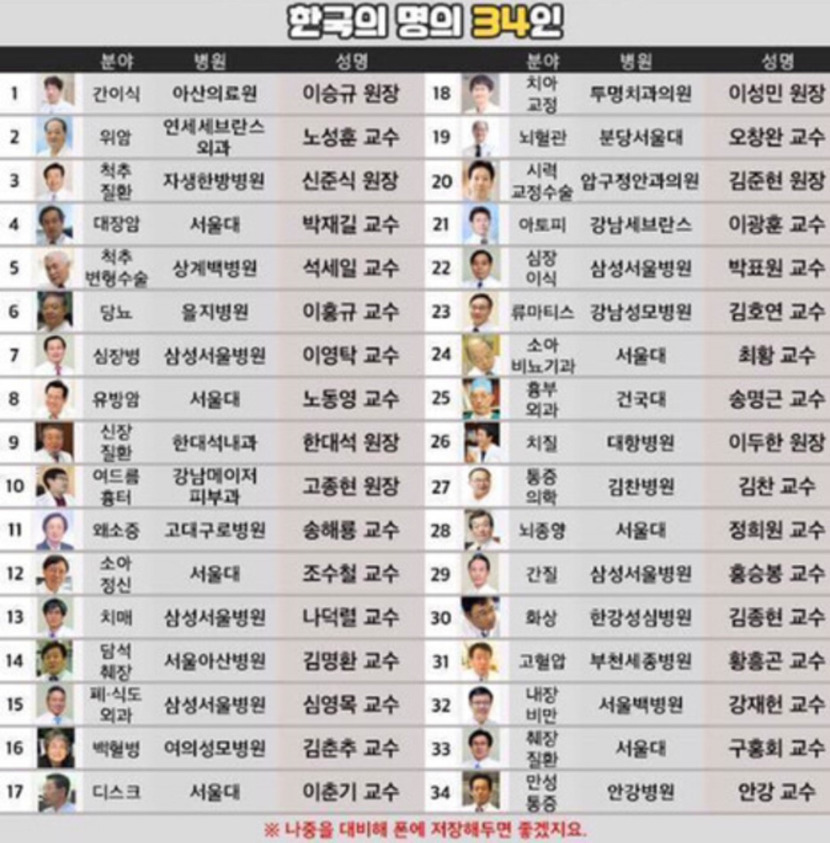 건강을 위한 필수 정보★★ 한국의 명의 34인