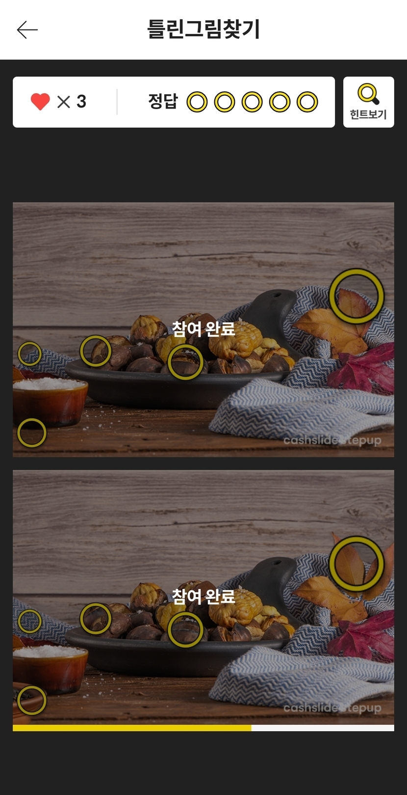 틀린그림 찾기 - 밤과 낙엽