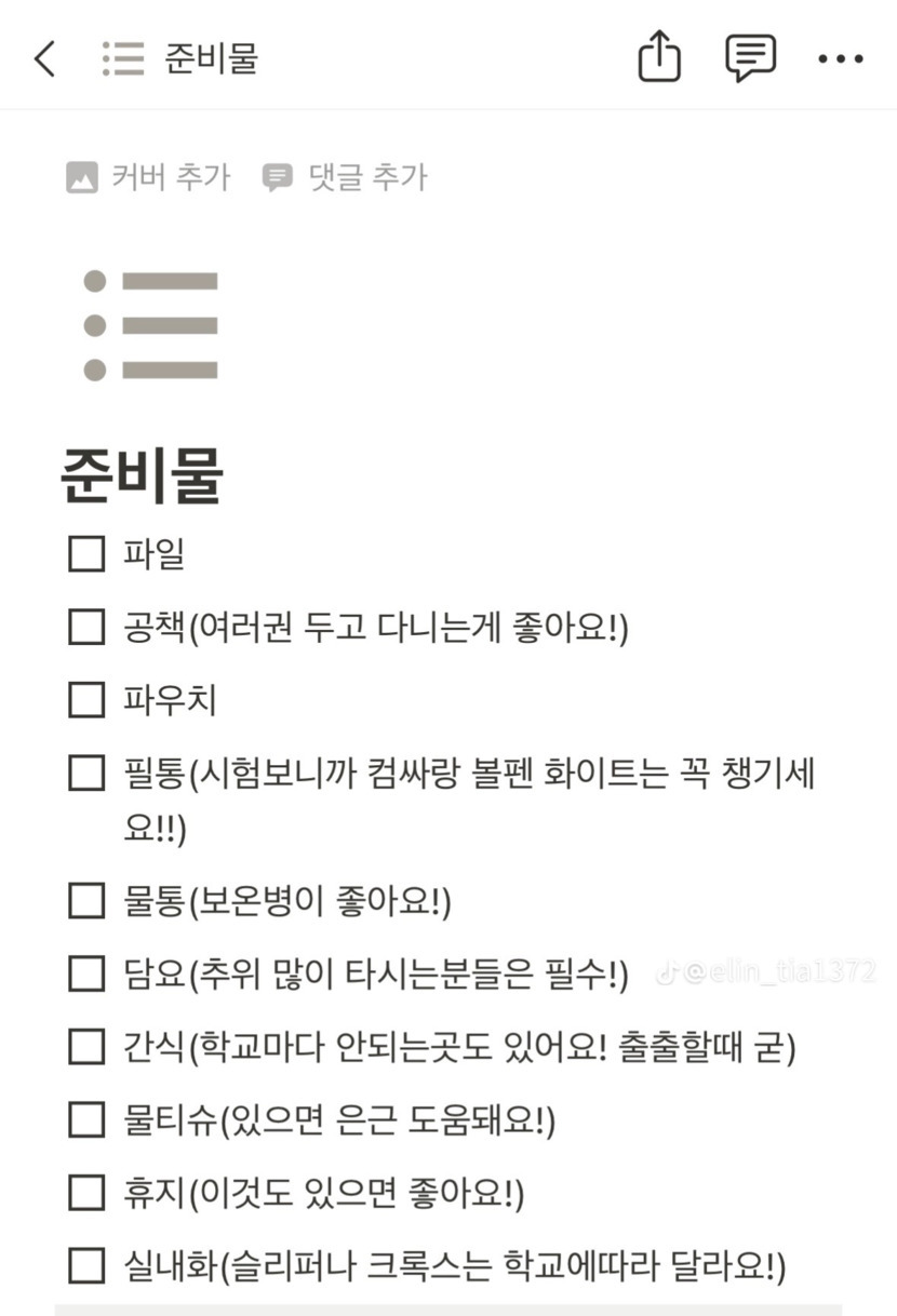 예비 중학생... 졸업,입학 축하드려요. 준비물..퍼왔습니다