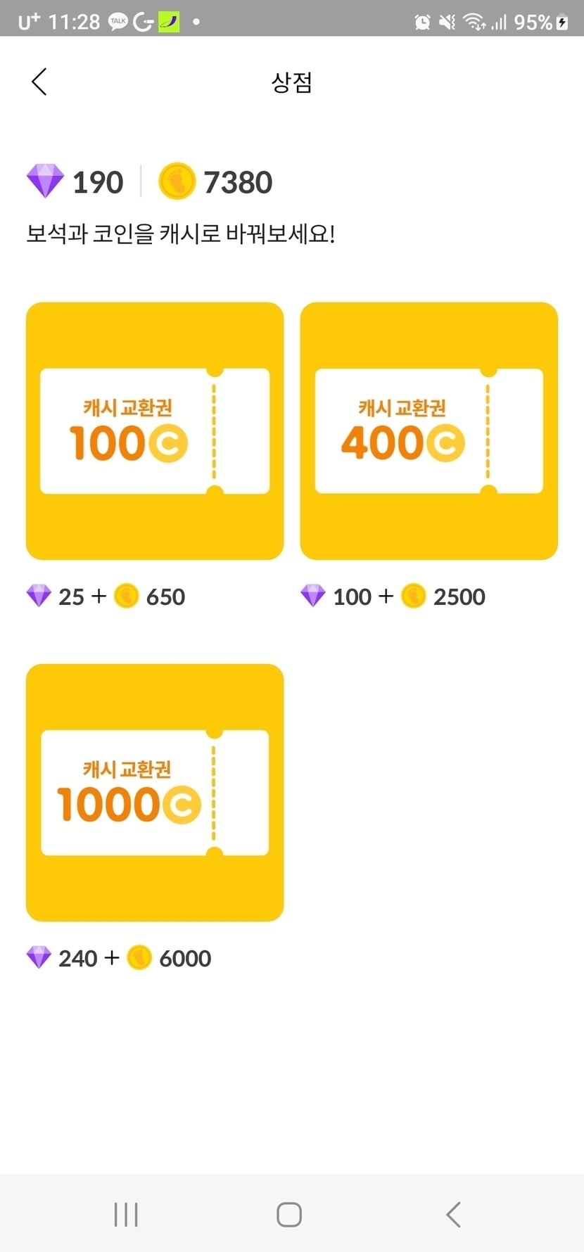 보석을 코인으로 바꿨는데..보석과 캐쉬 숫자가 떨어져있어요.ㅜㅜ