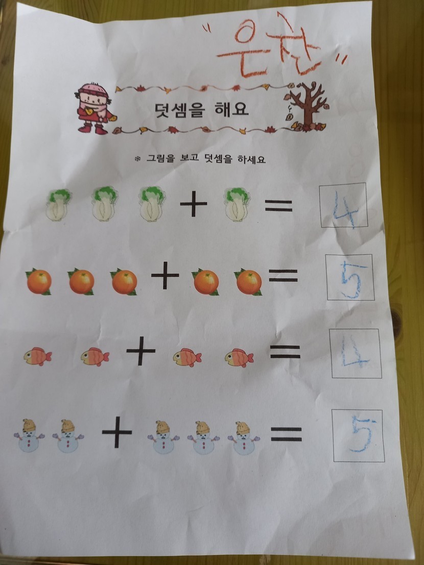 어린이집에서 공부했다고 자랑하네요