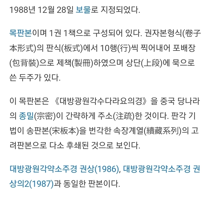 보물 963호 대방광원각약소주경 권하