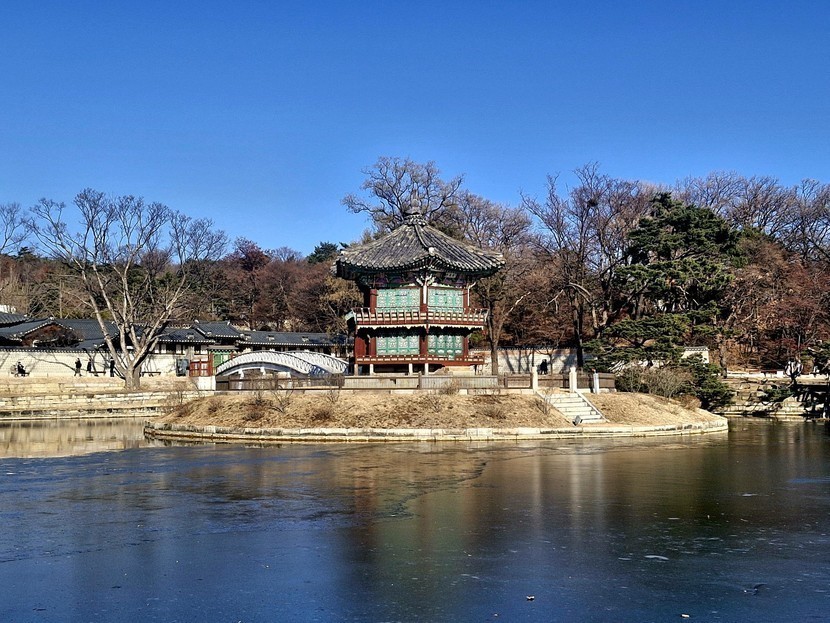 향원정 연못도 반쯤 얼었어요.