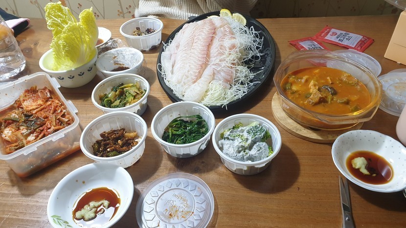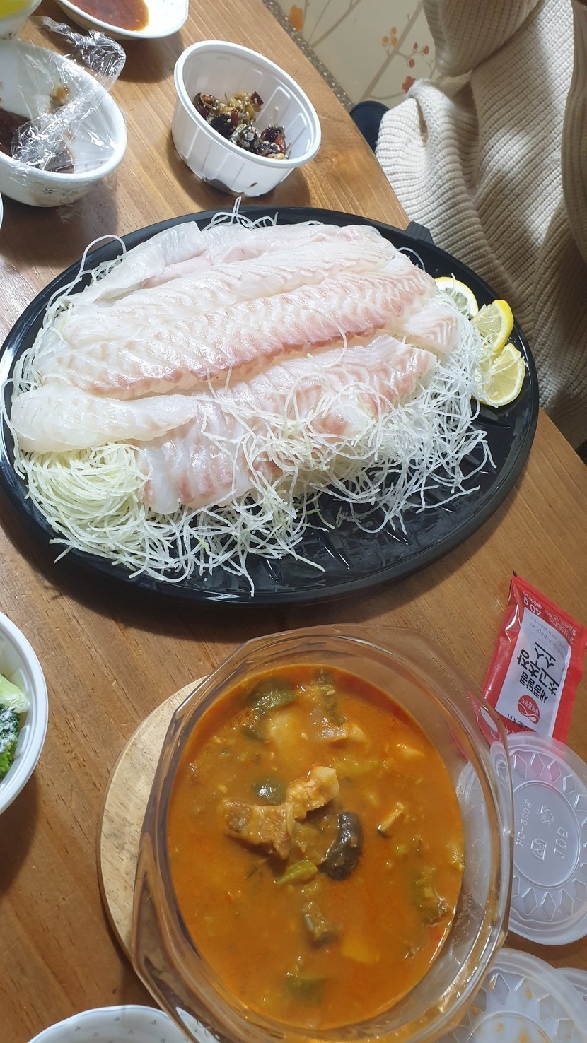 코스트코에 들러 이것저것 장보면서 저녁에 먹을 광어회를 집어 듭니다.