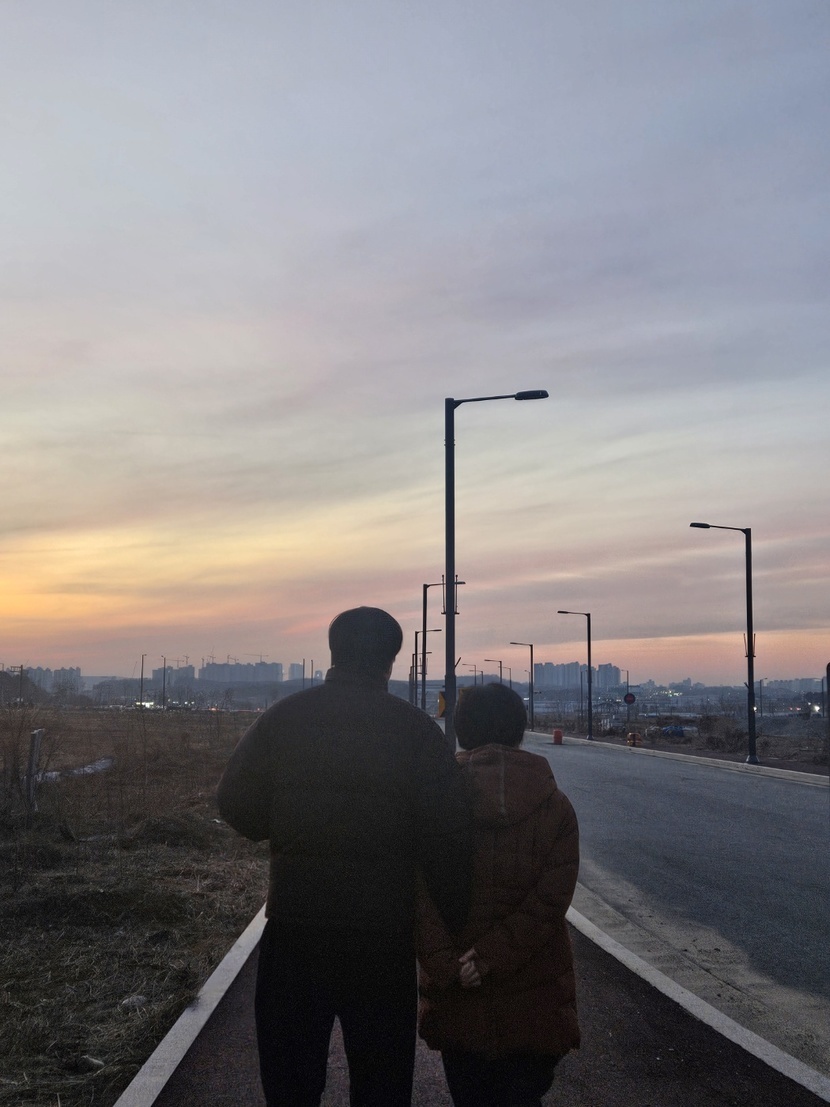 아들하고 산책중