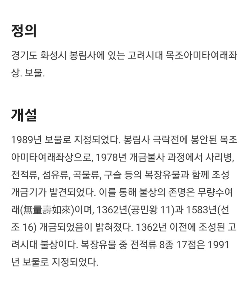 보물 980호 화성 봉림사 목조 아미타여래좌상