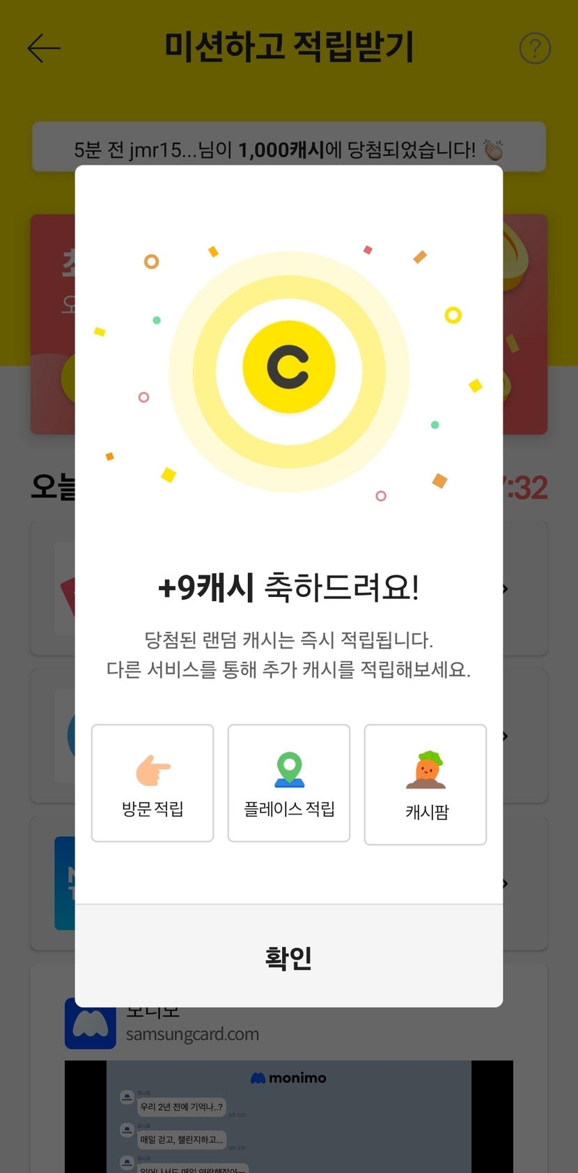 미션 캐시적립