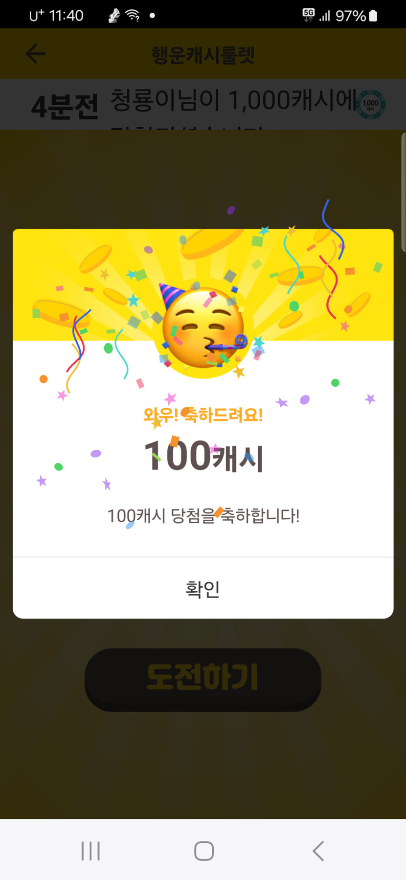 100캐시 받았어용