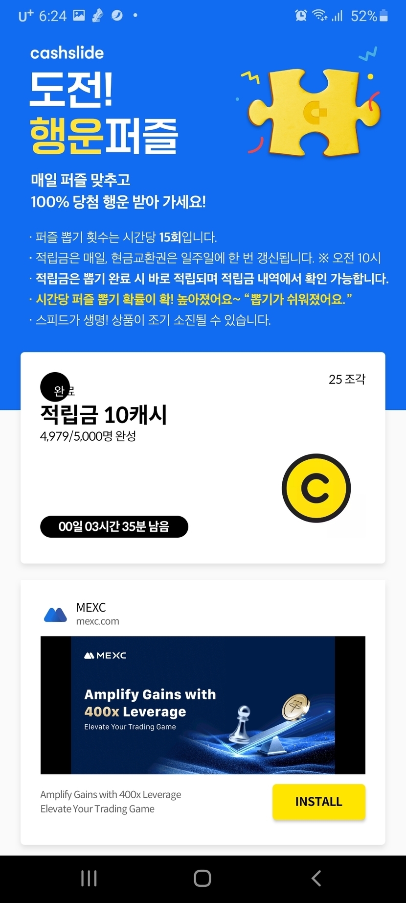 25.01.29 93 읽음 이건기적? ㅋㅋ 비우고 내려놓고 보듬고 구독하기 4 5 콘텐츠의 수익 5 어제 다못하고 10 퍼 도전했는데 또 중간에 까묵고 지금 픅ㄹ적하러갔다가 발견 이게 웬떡인가싶어서 10원이라도 벌라꼬 들어가서 겟ㅎㅎ 5 0 / 300 입력