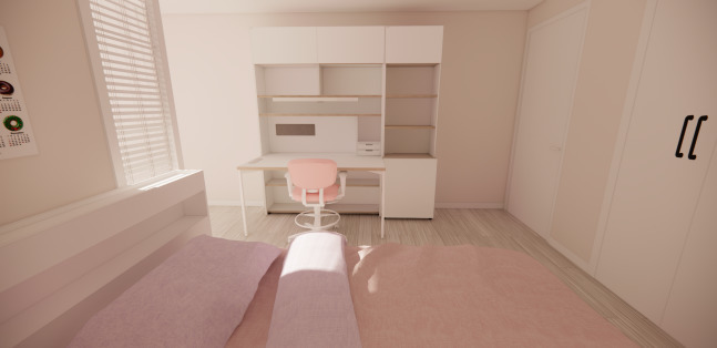 발코니가 있는 방을 확장하다 보면 내력벽으로 인해 방에 날개벽이 생기는 경우가 종종 있다. 대개는 개방감과 공간 활용도를 높이기 위해 확장을 선택하지만, 정작 날개벽 때문에 가구 배치가 어려워져 난감해하는 사례가 많다. 필자는 이러한 상황에서 항상 고정관념을 깨고 시각을 전환해보라고 권유한다. 사실 이 날개벽은 방해 요소가 아니라, 색다른 배치를 시도할 수 있는 훌륭한 파티션 역할을 할 수 있다.ⓒ도다미네플레이스 @copyright_dodamine placeⓒA씨는 최근 5학년 딸을 위한 방을 꾸미면서 한쪽에만 있는 날개벽 때문에 어려움을 겪고 있었다. 침대를 창가 쪽에 가로로 두자니 발 밑에 데드스페이스가 생기고, 세로로 두자니 책상을 배치했을 때 딸이 문을 등지게 되는 문제가 발생했다. 참고로, 책상은 문을 등지는 배치보다는 문을 바라보거나 측면에 두는 것이 아이의 집중력에 더 긍정적이다. 이제 본격적인 학령기에 진입한 딸에게 학습과 휴식이 조화를 이루는 공간을 만들어주려면 어떻게 해야 할까?ⓒ필자는 침대를 날개벽이 있는 쪽에 배치할 것을 제안했다. 이 자리에 침대를 두면 아이가 누웠을 때 방 문 너머 거실의 상황이 자연스럽게 시야에 들어오는데, 이는 처음으로 잠자리 독립을 시도하는 아이에게 심리적인 안정감을 줄 수 있다. 침대의 헤드 부분이 날개벽 앞으로 조금 튀어나오게 되는데, 빛은 통과시키면서 공간을 구분할 수 있는 블라인드 스타일의 파티션을 세우면 침대의 가로 길이만큼 벽이 연장된 효과가 나면서 공간이 단정하고 정리된 느낌을 줄 수 있다.ⓒ책상과 책장 세트는 문 쪽에 가깝게 배치해보자. 이러한 배치는 아이가 책상에 앉았을 때 시각적으로 안정감을 느끼도록 돕는다. 그러면 자연스럽게 의문이 생길 것이다. 원래는 발코니였던 이 공간은 어떻게 활용하면 좋을까?ⓒⓒ필자는 이 공간을 사춘기에 접어드는 딸만의 ‘힐링 존’으로 꾸며볼 것을 추천한다. 딸이 독서를 좋아한다면 5단 책장을 배치하고, 내력벽과 파티션으로 가려진 구석에는 1인 소파와 작은 사이드 테이블을 놓아보자. 이렇게 하면 이 공간이 딸만의 아늑한 독서 공간이자 힐링 공간으로 탈바꿈하게 된다.ⓒ조금 더 아늑한 분위기를 원한다면, 책상 옆에도 블라인드 가벽을 추가로 설치하는 방법이 있다. 이는 책장에 꽂힌 책들로 인해 공간이 어수선해 보일 수 있는 단점을 보완하며, 시각적으로 훨씬 깔끔하고 정돈된 인상을 준다.