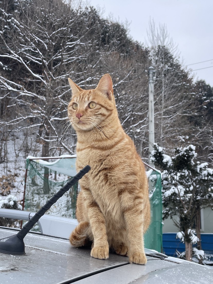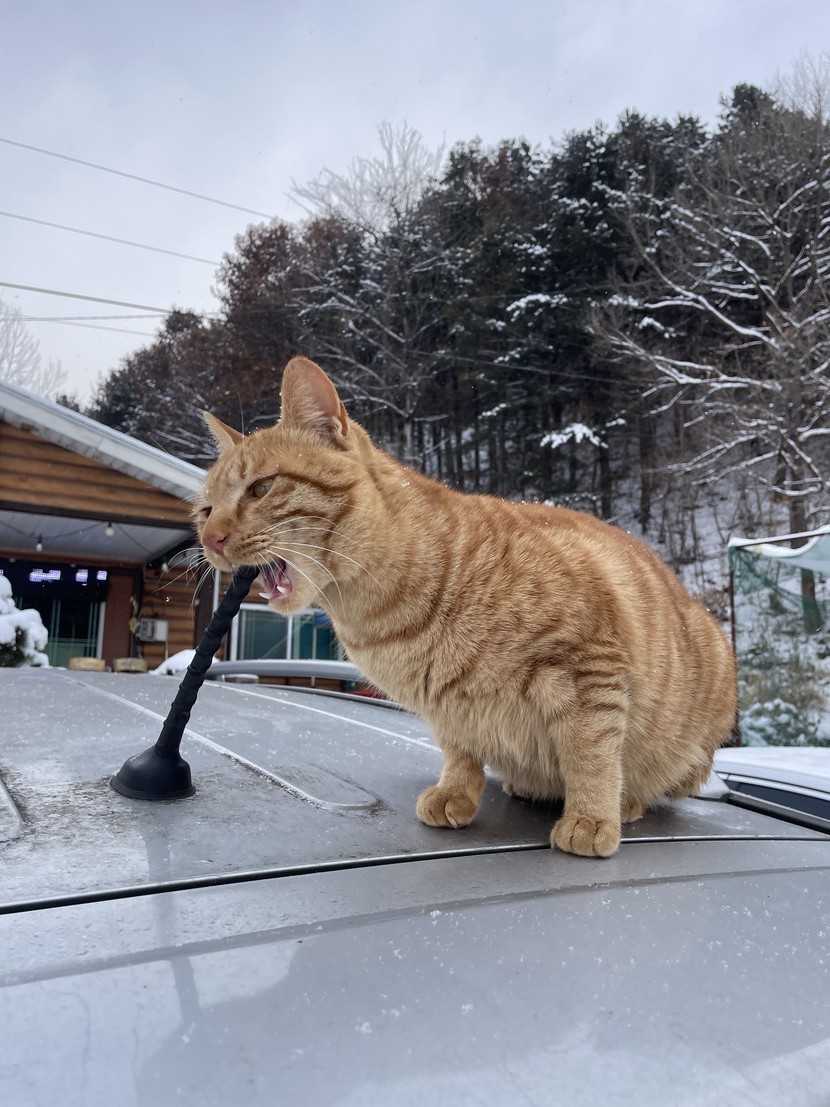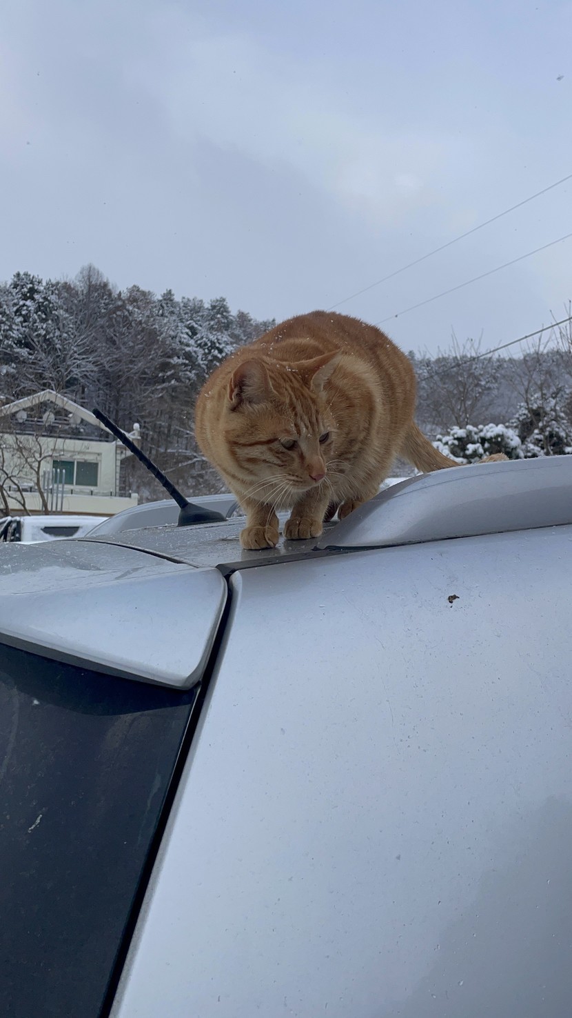 치즈냥 한마리가 저희차 위로 훌~쩍.