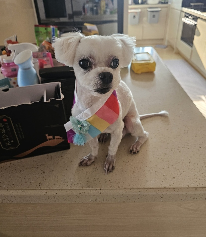 우리 강쥬 미용하고 설명절이쁜 목도리