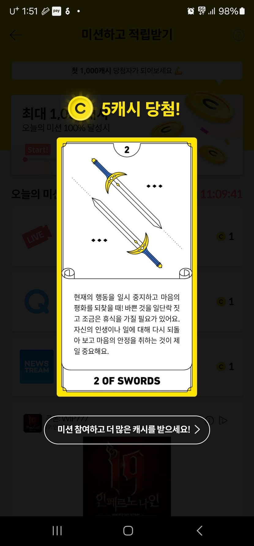 1일...타로미션...쇼핑쿠폰...미션보드