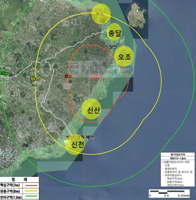 「습지보전법」에 따른 습지보호지역이 2.2km 이격