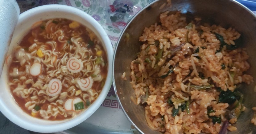 나물 비벼서 컵라면이랑