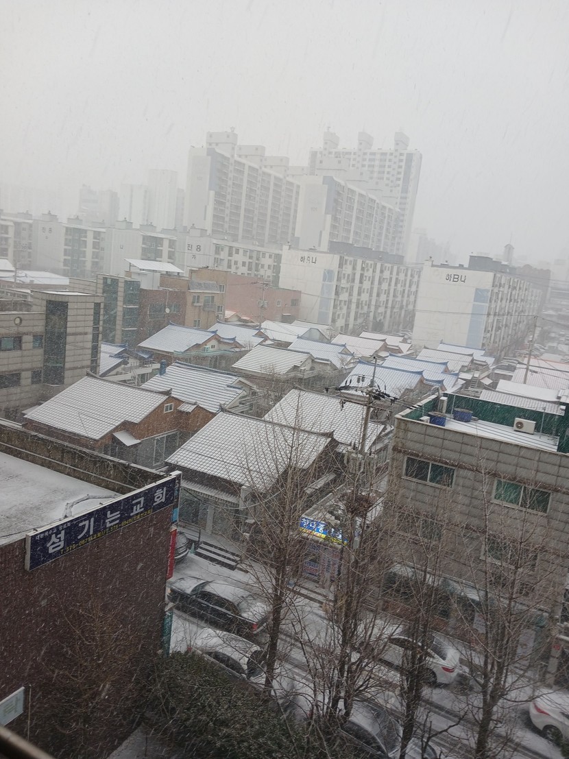 밖에 는이오고있어요
