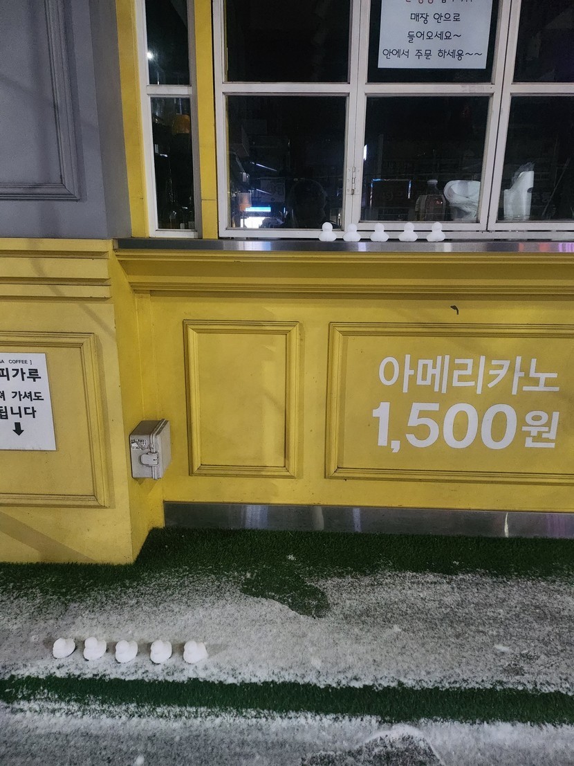 메가커피에 눈이 왔어요