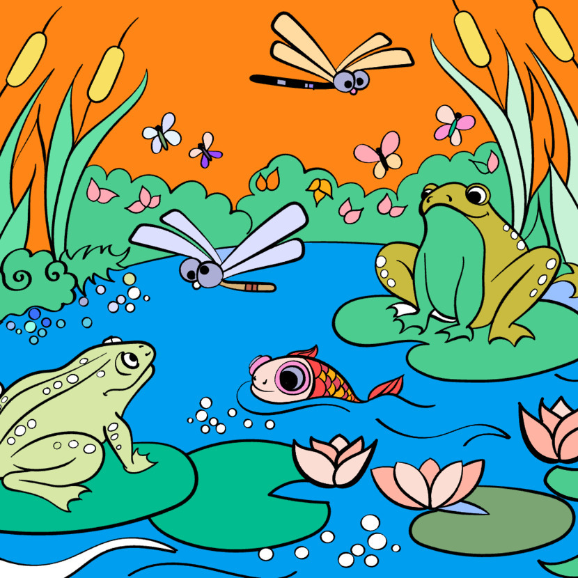 노을진 연못