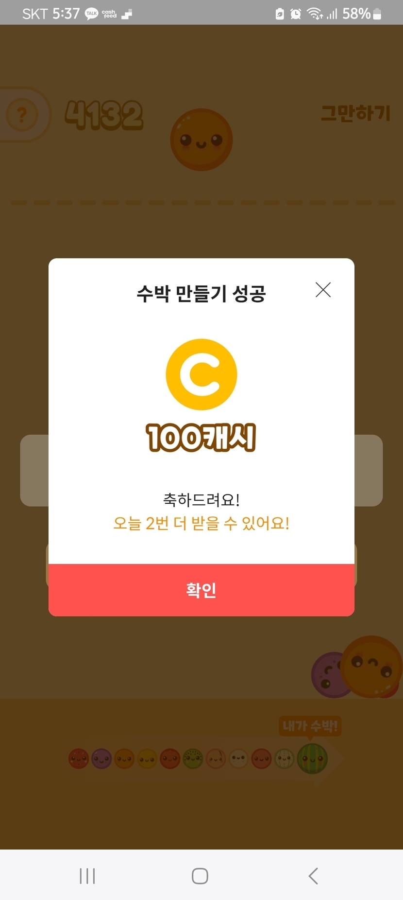 ^^ ㅋ ㅋ ㅋ 수박만들어서100케시받았어요ㆍ