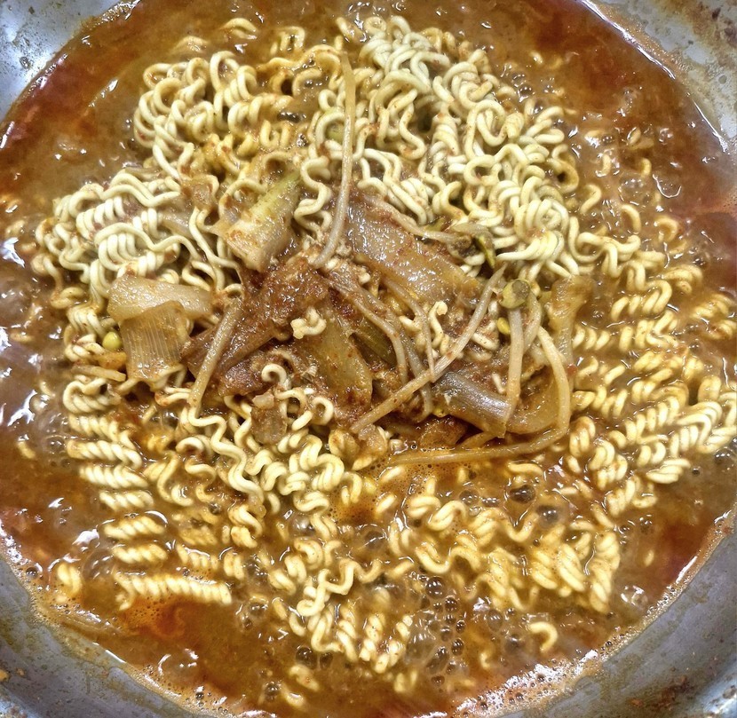 꽃게탕 다 먹고 국물에 라면 끓였어요.
