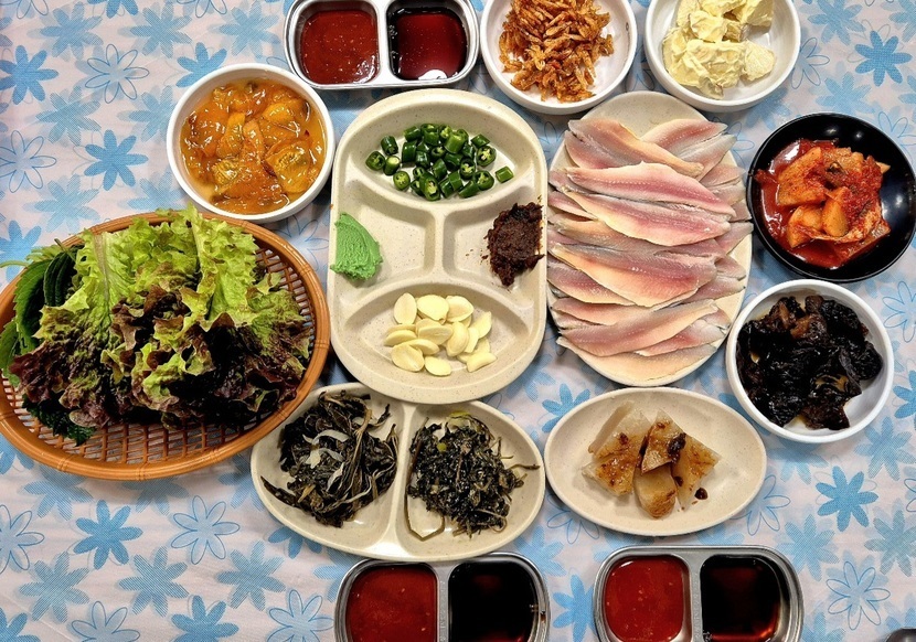 후포항에 도착해 꽃게탕과 밴댕이회와 무침