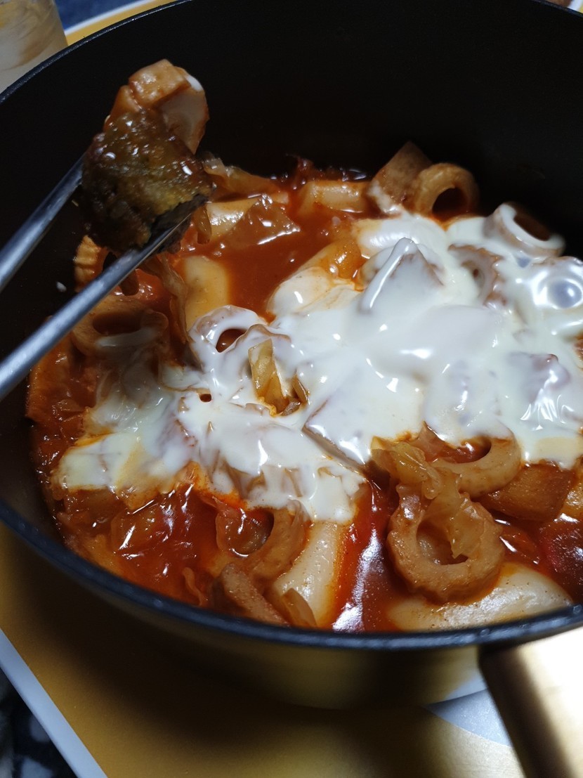 주말야식 치즈떡볶이 튀김 먹었어요~