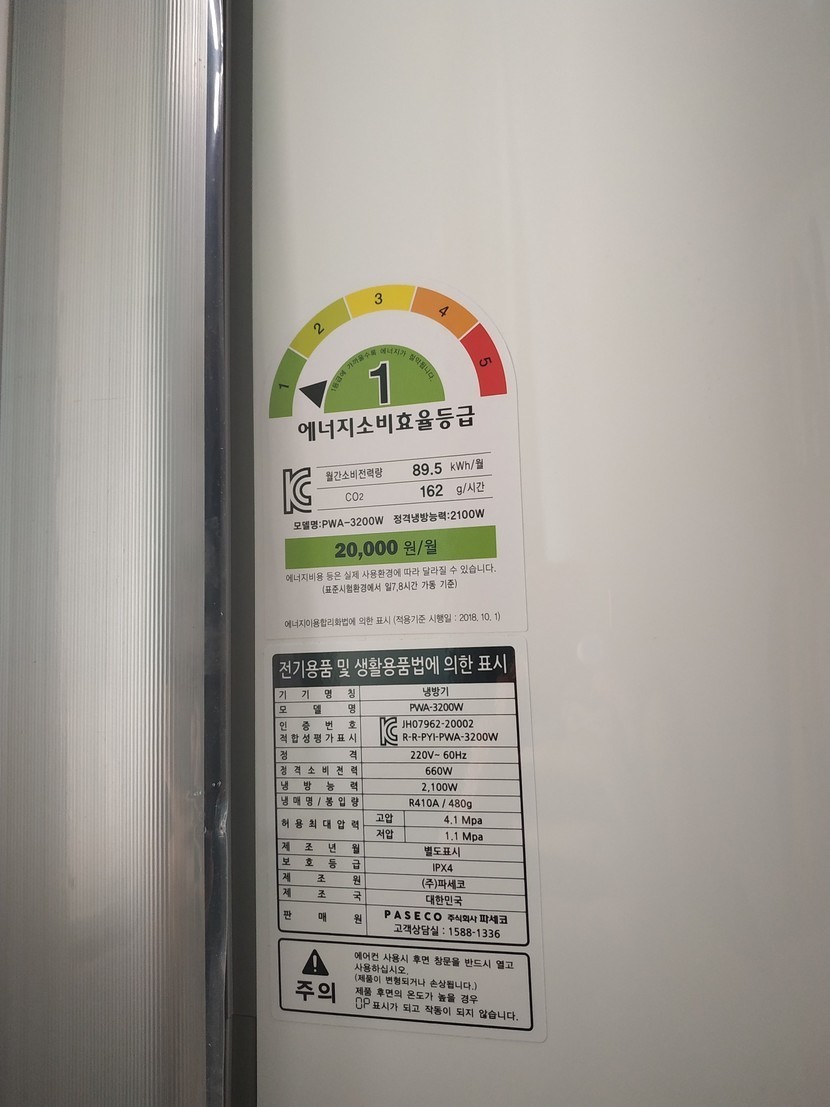 파세코 창문형에어컨2 (에너지효율 1등급)