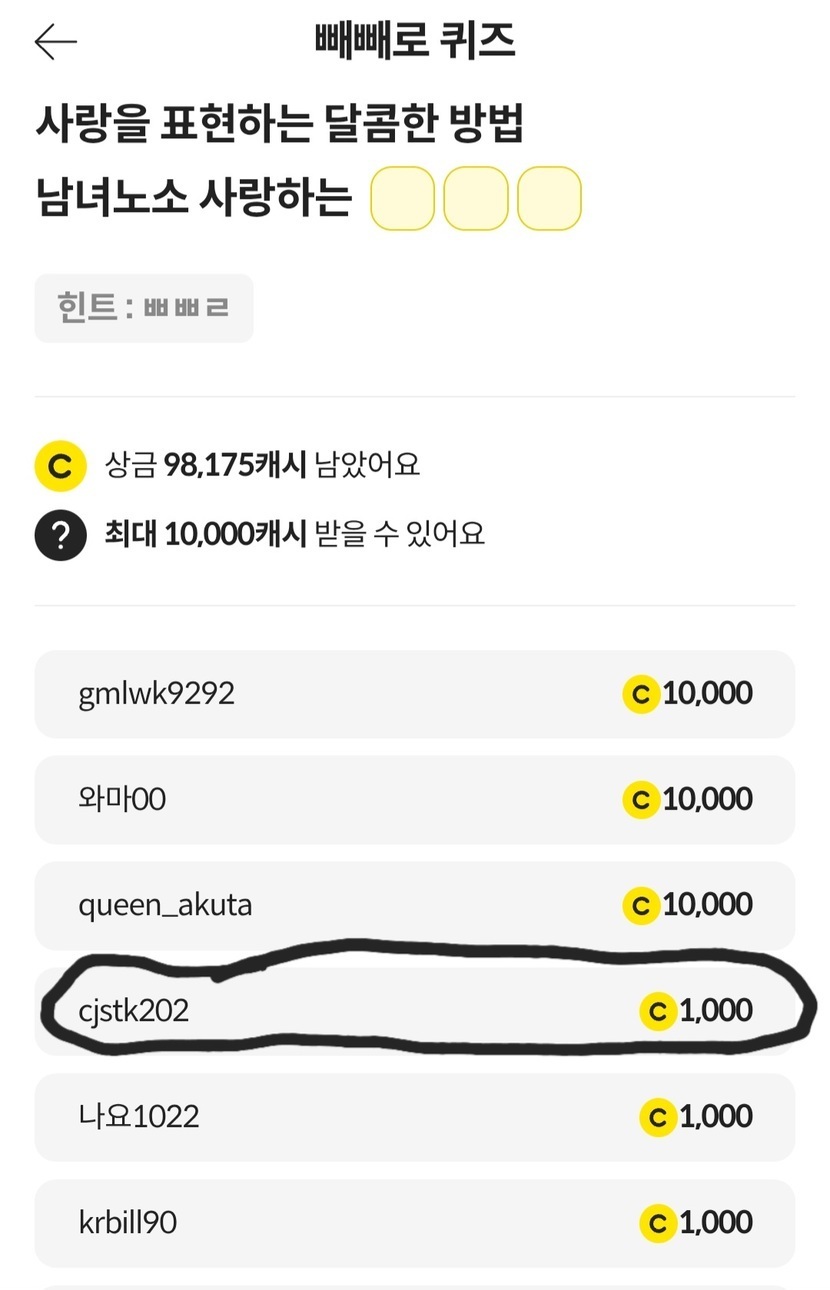 저 1000원 당첨 됐어요