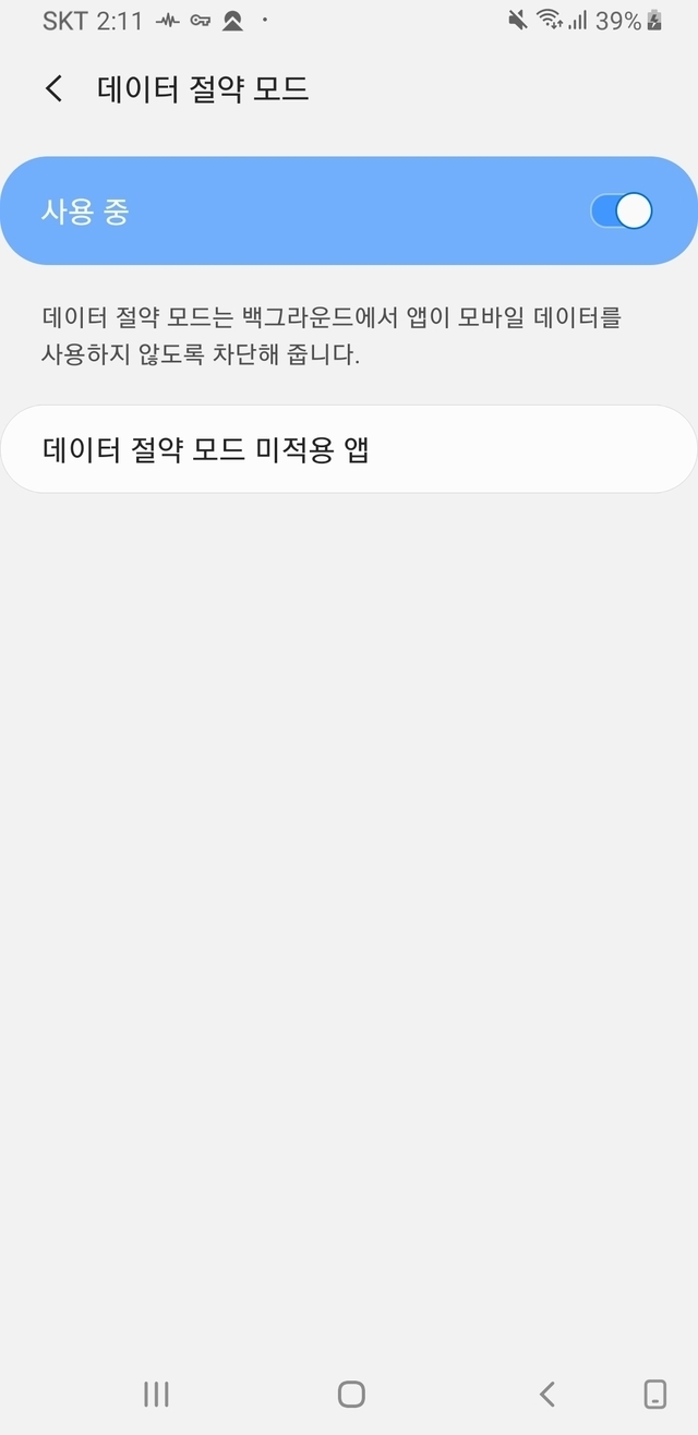 데이터 절약 모드 사용하면 데이터 사용률 잠잠해짐