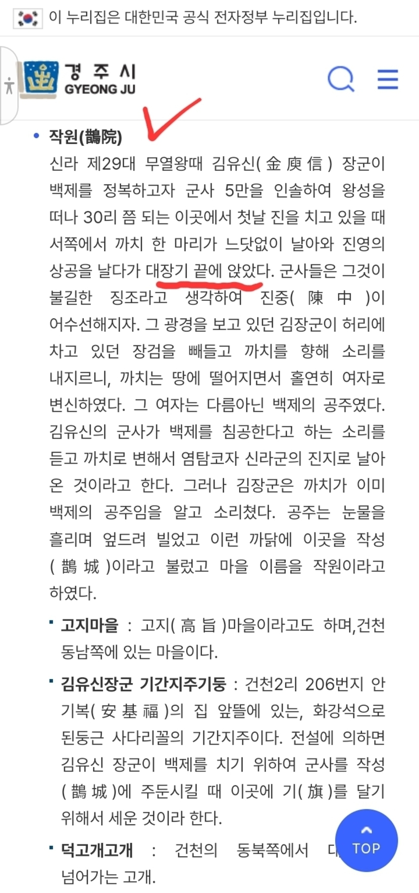 엄지 휘 ㅡ 대장기 麾 휘 ㅡ 김유신 장군 휘간지주