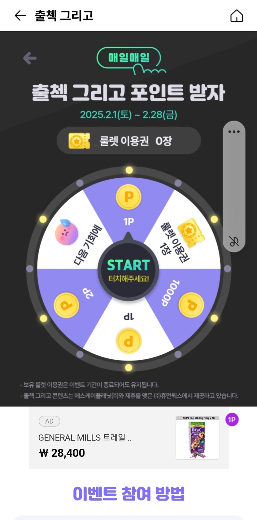 룰렛 1포인트