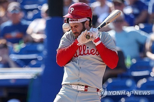 하퍼, 투수 공에 맞고 통증 호소…다행히 큰 부상은 없어