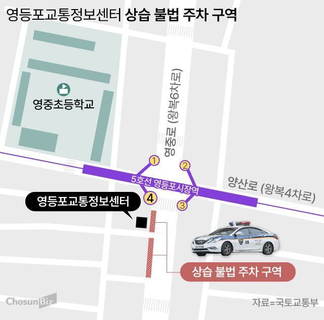 영등포구가 불법 주차를 지적한 교통정보센터는 영등포경찰서 소속이다. 센터는 지하철 당산역과 영등포역을 잇는 왕복 6차로 영중로에 접하고 있다. 인근 지역에서 발생한 교통사고를 처리하고, 음주 운전·불법 주정차·신호 위반을 단속하는 역할을 맡고 있다. 이를 위해 순찰차 6대가 배치돼 있다.