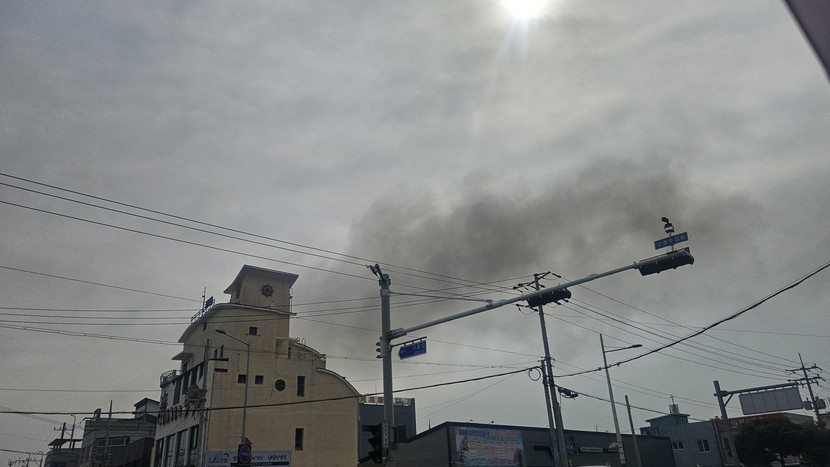 불이나서 하늘에 검은연기가...