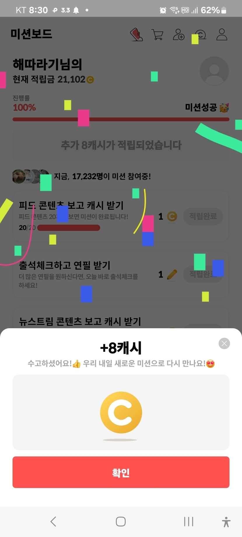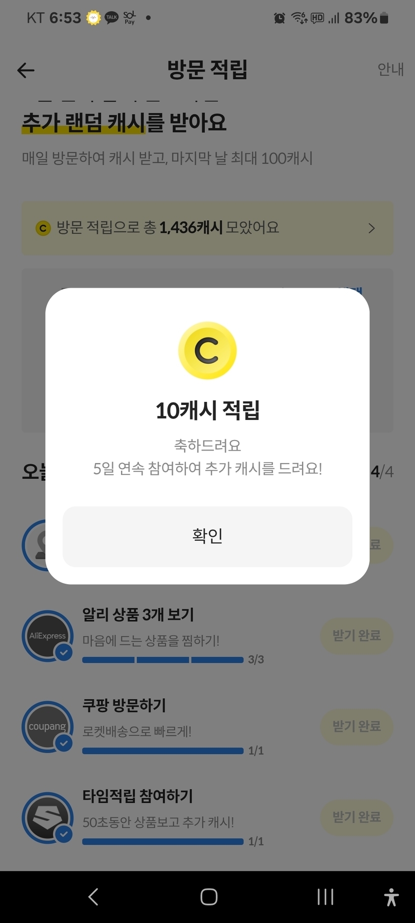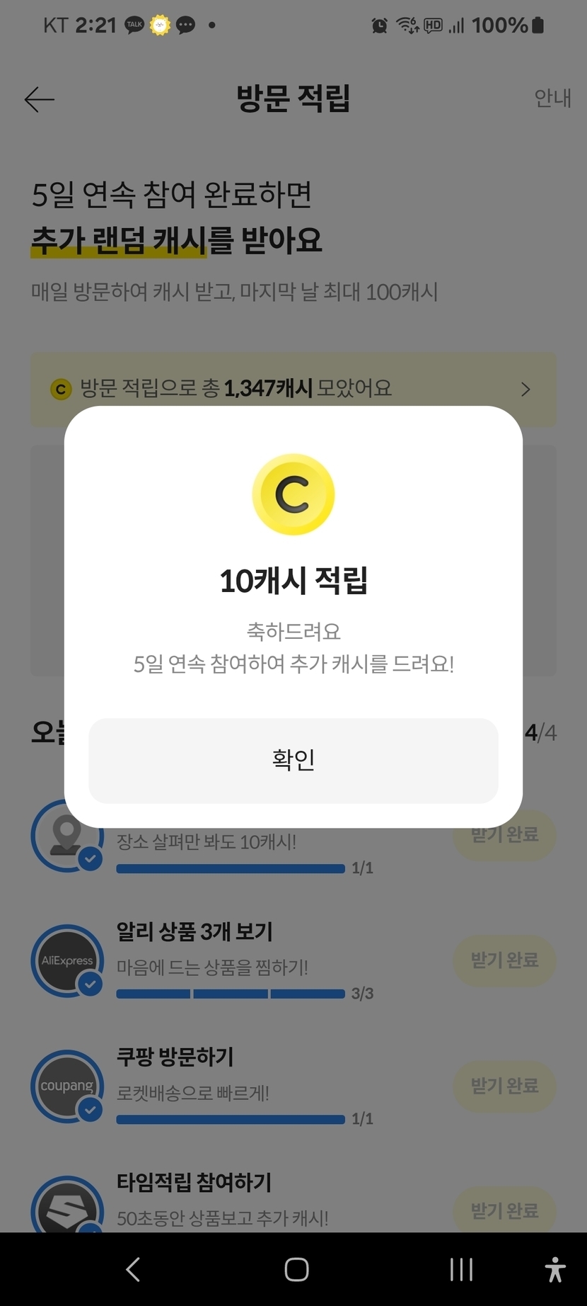 캐시 차곡차곡 쌓이는 중