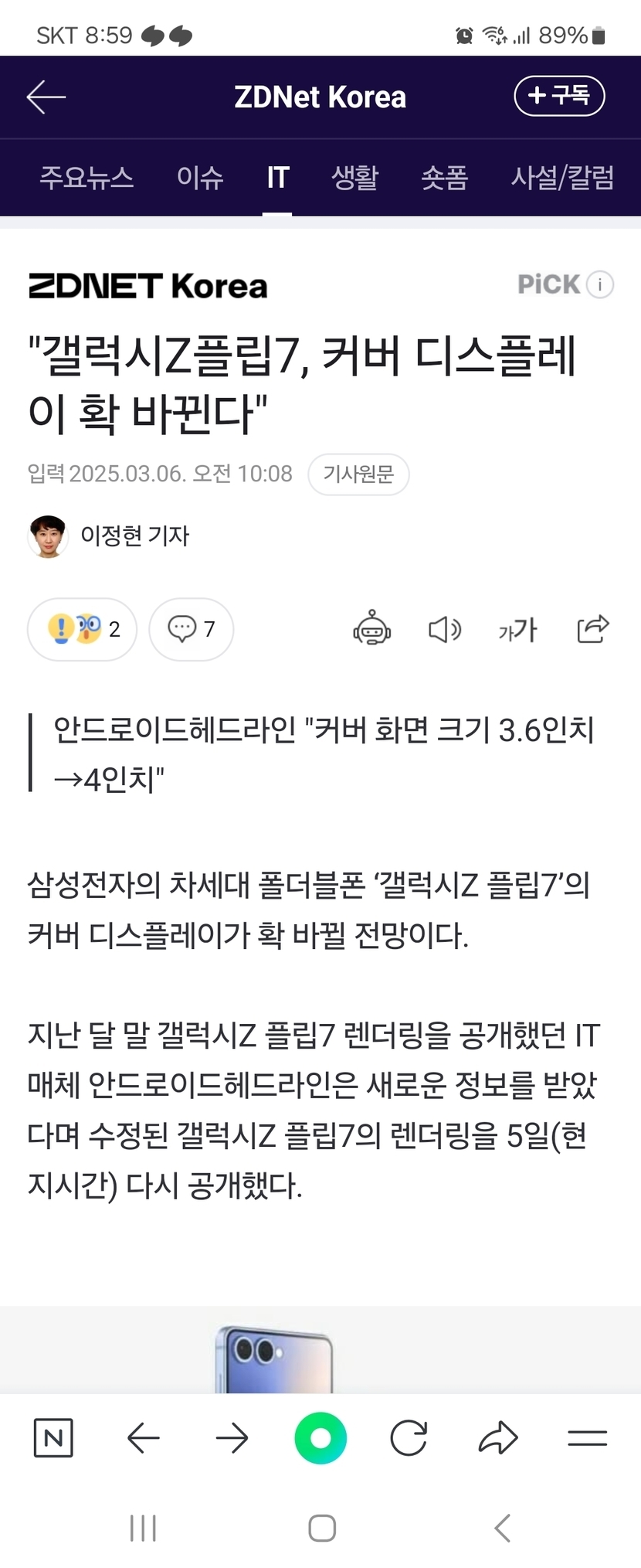 "갤럭시Z플립7, 커버 디스플레이 확 바뀐다"