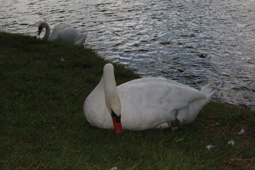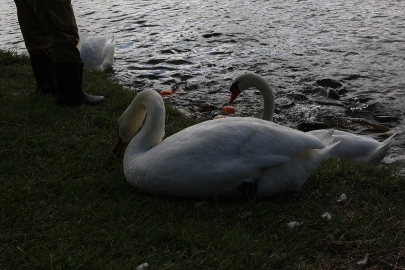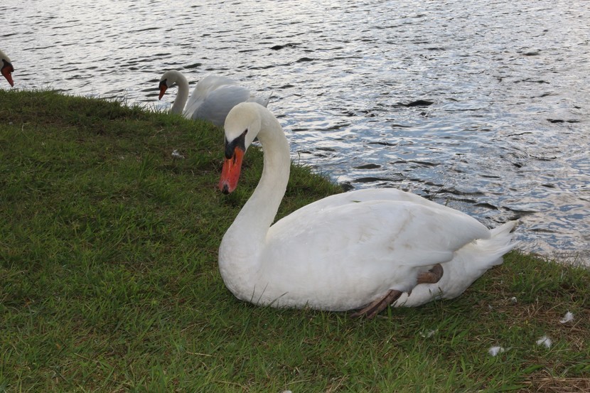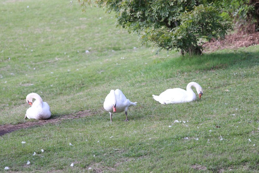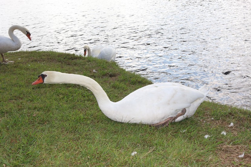 일본 시다카호수에서 산책하면서 우아한 백조들