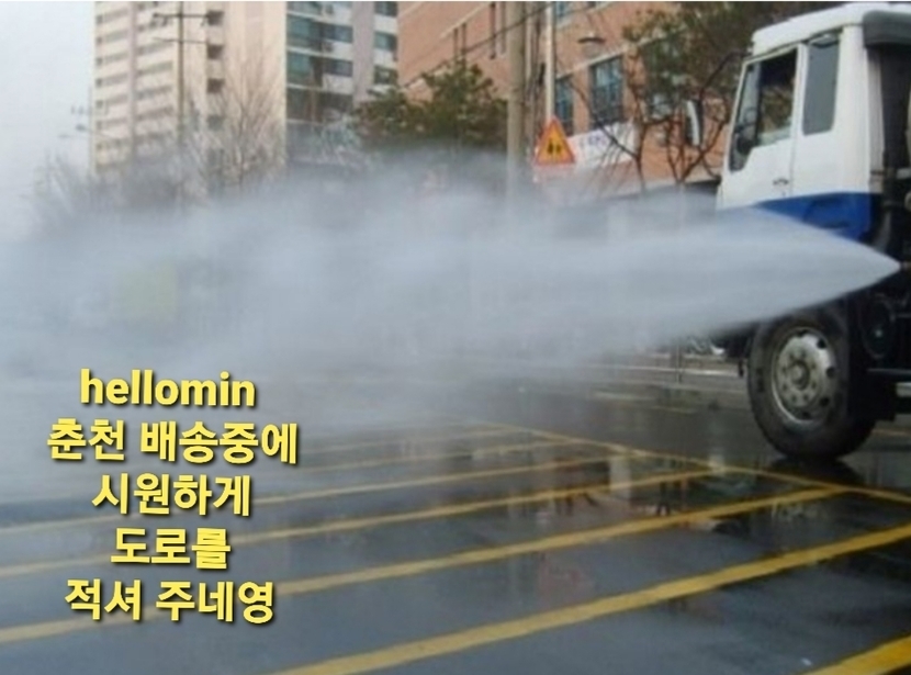 도로위를. 시켜주는. 무더운 여름. 반가운 🚿🚿🚿물대포 차