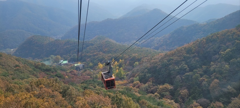 산 위에서 케이블카 타기