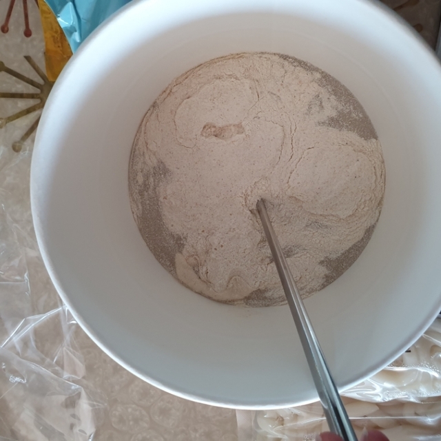 여기서 잘 섞어야돼 이거 심하게 뭉쳐있으면 전자레인지 돌리면서 분말이 익으면서 타버려 잘 섞어주기