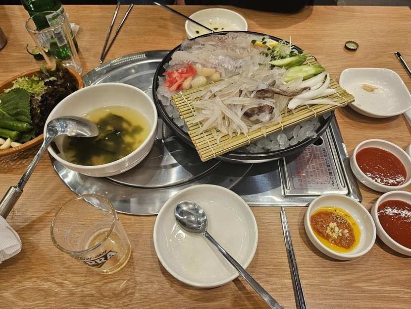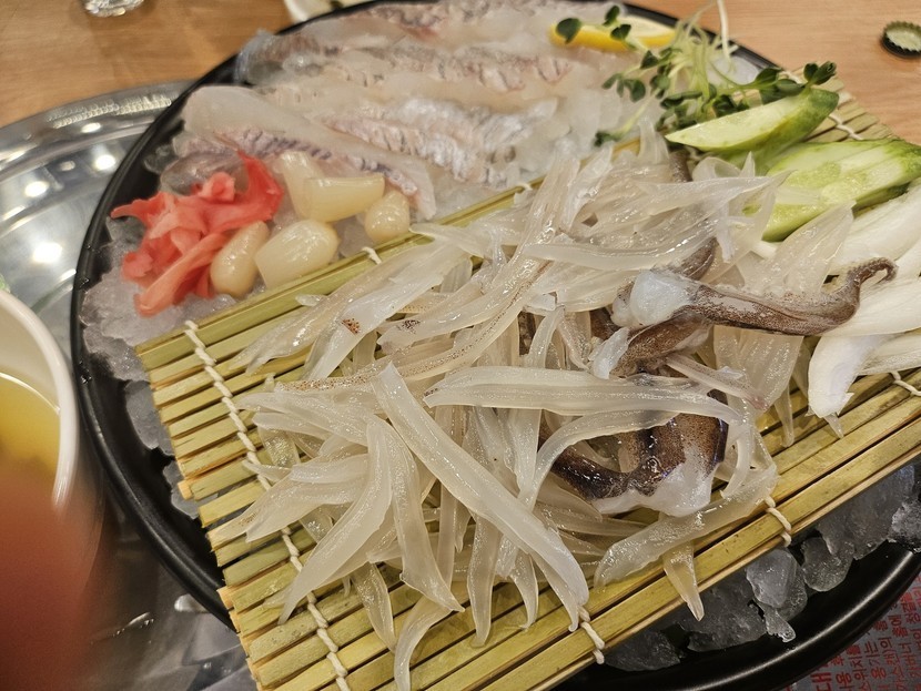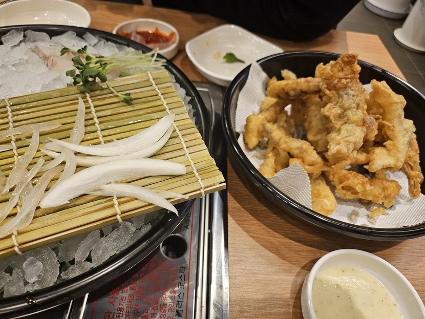오징어회와 튀김으로 냠냠