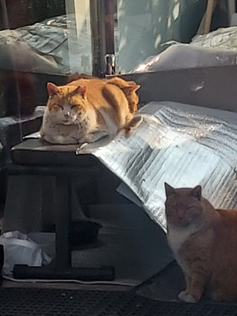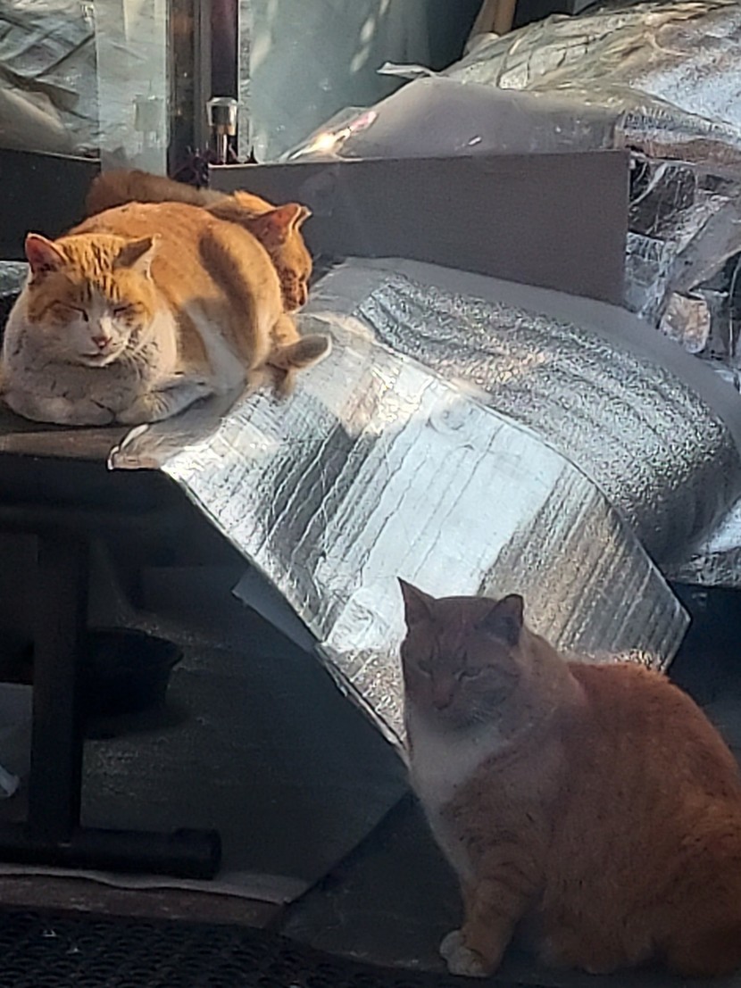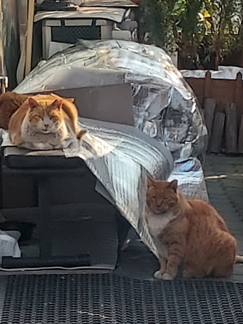 햇볕에서 비타민D 체험중인 돼지삼냥이들~~ㅋㅋ
